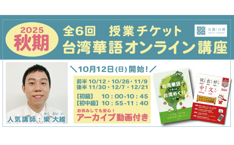 【2025年10月12日(日)開講】【2025秋期】台湾華語オンライン教室(講師:樂大維)全6回